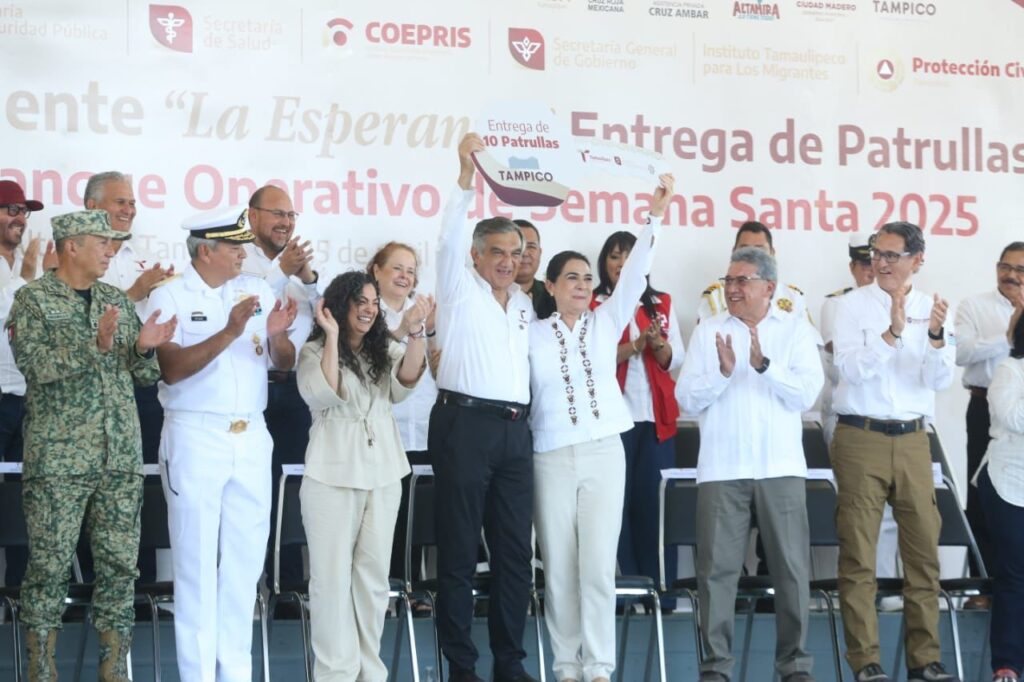 En el marco de la inauguración del puente “La Esperanza”, el gobernador atestiguó también la entrega de 30 patrullas por parte de los gobiernos municipales de Altamira, Tampico y Madero a fin de fortalecer la capacidad operativa de la Guardia Estatal en la zona conurbada.