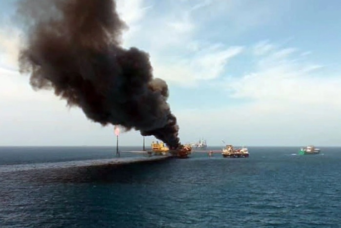 Catástrofe en plataforma de Pemex en el Golfo de México, arroja cinco muertos y seis heridos tras incendio.