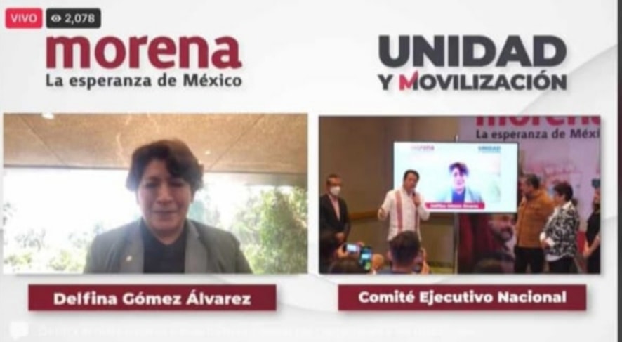 La Profra. DELFINA GÓMEZ ÁLVAREZ, actual Secretaria de Educación del gobierno federal, ganó la encuesta final del proceso interno y será la precandidata de morena a la gubernatura del Estado de México.